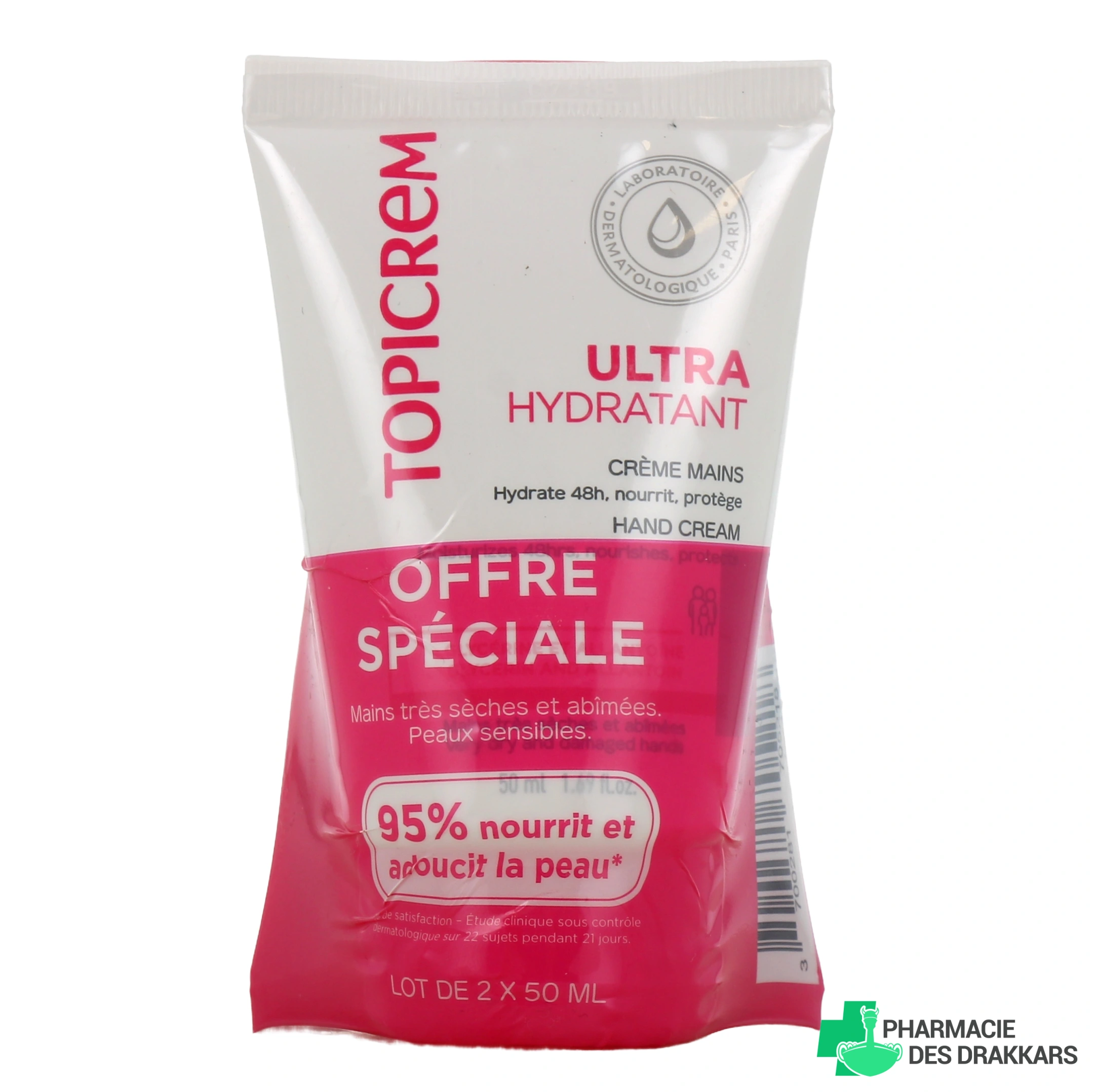 Conditionnement proposé par votre pharmacie en ligne pour la crème ultra-hydratante pour les mains Topicrem : tube de 50 ml, ou Lot de 2 tubes de 50 ml (sous réserve de disponibilité).