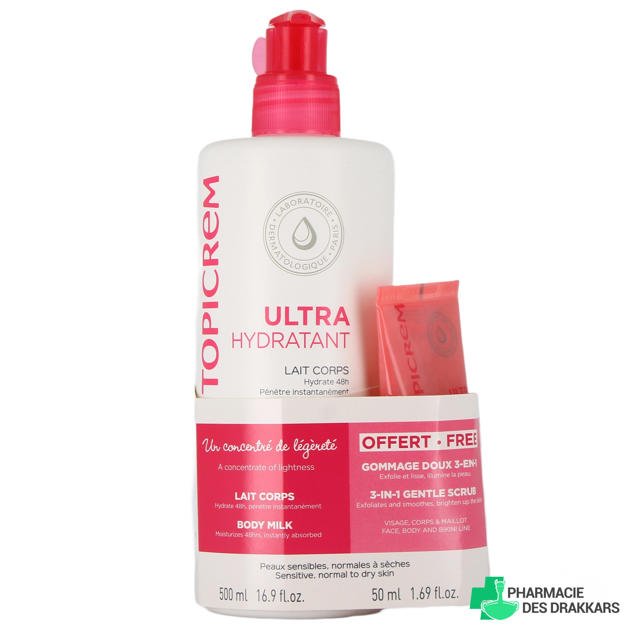 Présentations proposées par votre pharmacie en ligne pour le lait corps ultra-hydratant Topicrem :