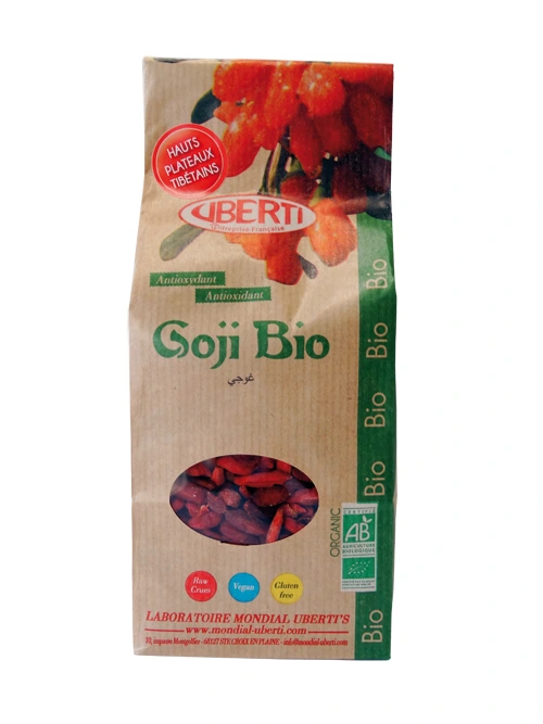 Produites par Uberti, ces Baies de Goji Bio constituent un complément alimentaire riche en acides aminés, en minéraux et oligo-éléments rares, en acides gras essentiels et en vitamines.