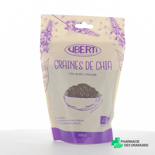 Les présentations proposées par votre pharmacie en ligne pour les graines de Chia Bio Uberti : sachet de 300 g de graines Bio.