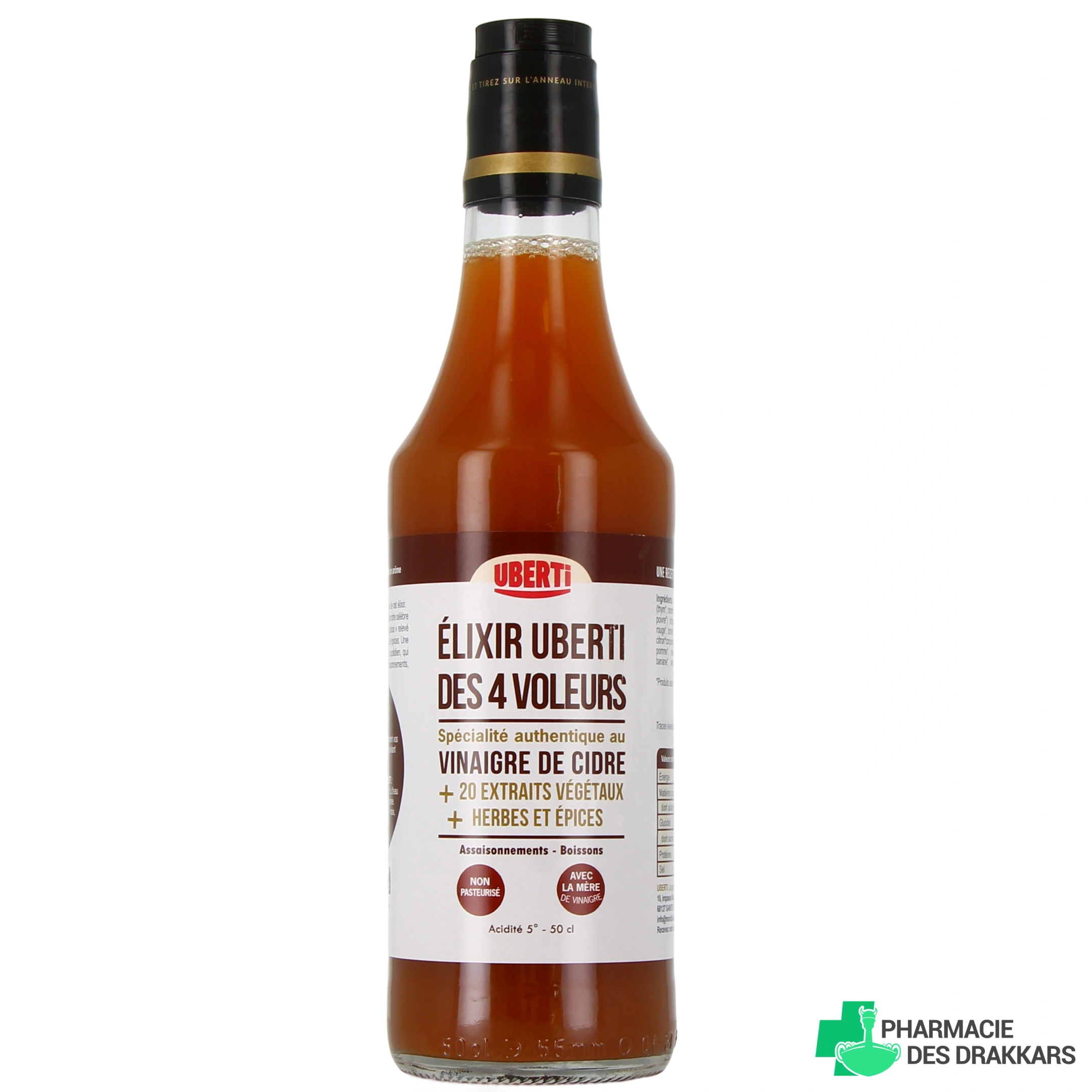 Vous pourrez retrouver le vinaigre des 4 Voleurs Bio Uberti dans les présentations suivantes sur notre pharmacie en ligne : bouteille de 50 cl (soit 500 ml ou un demi-litre).