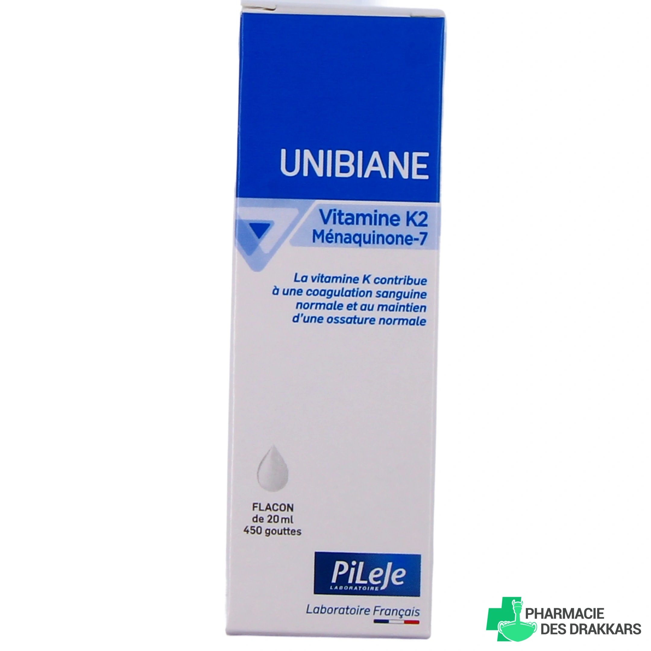 Unibiane Vitamine K2 Ménaquinone-7 est un complément alimentaire mis au point par le laboratoire Pileje. Il est destiné aux personnes qui ont besoin de compléter leurs apports en vitamine K.