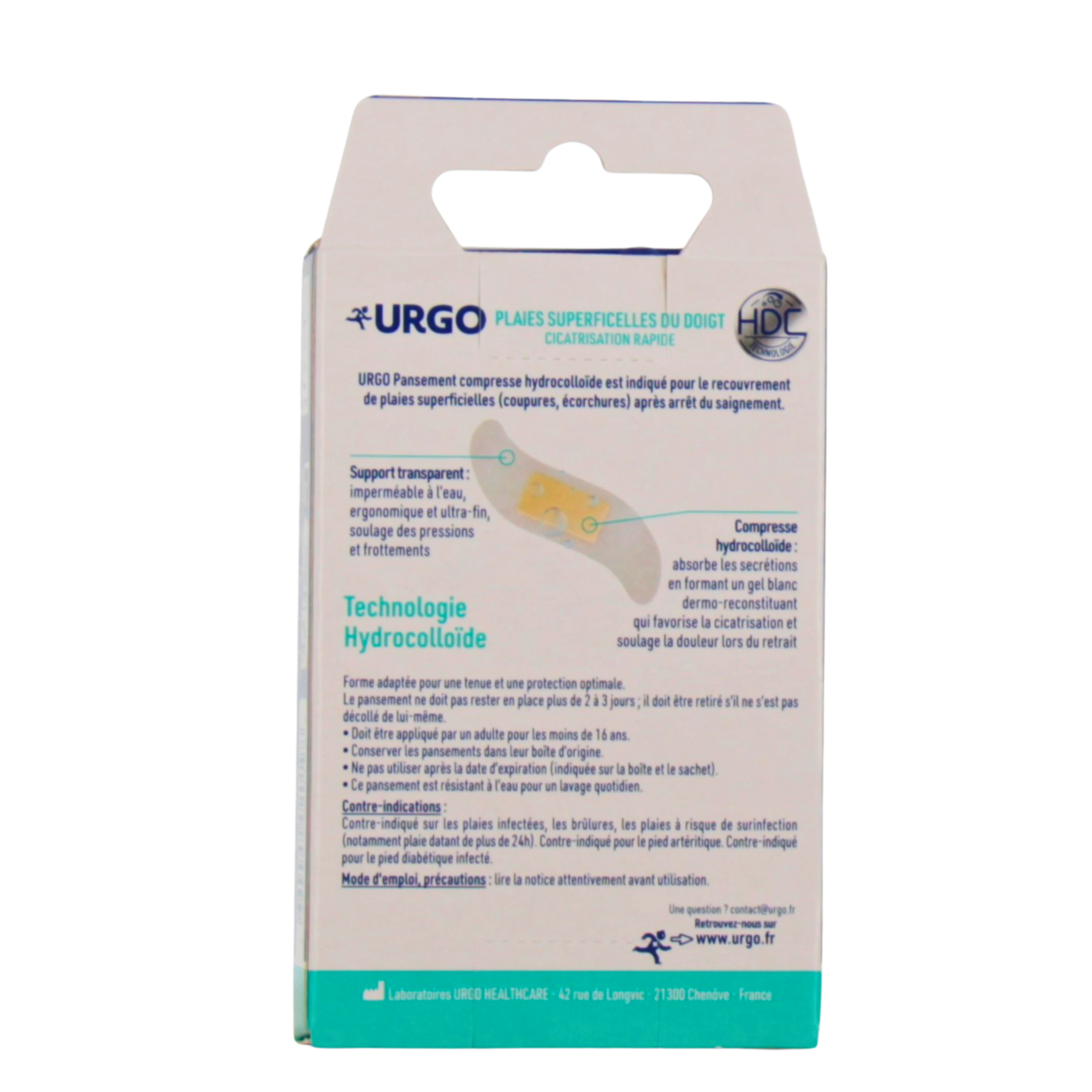 Les pansements cicatrisants Urgo sont spécialement formulés avec des compresses hydrocolloïdes, qui favorisent la cicatrisation rapide du doigt. En effet, ils absorbent les sécrétions, soulagent efficacement et durablement la douleur tout en cicatrisant rapidement la blessure. La compresse centrale forme un gel dermo-reconstituant qui accélère la cicatrisation de la blessure superficielle. Ce pansement protège ainsi la plaie des microbes, tout en favorisant la cicatrisant.