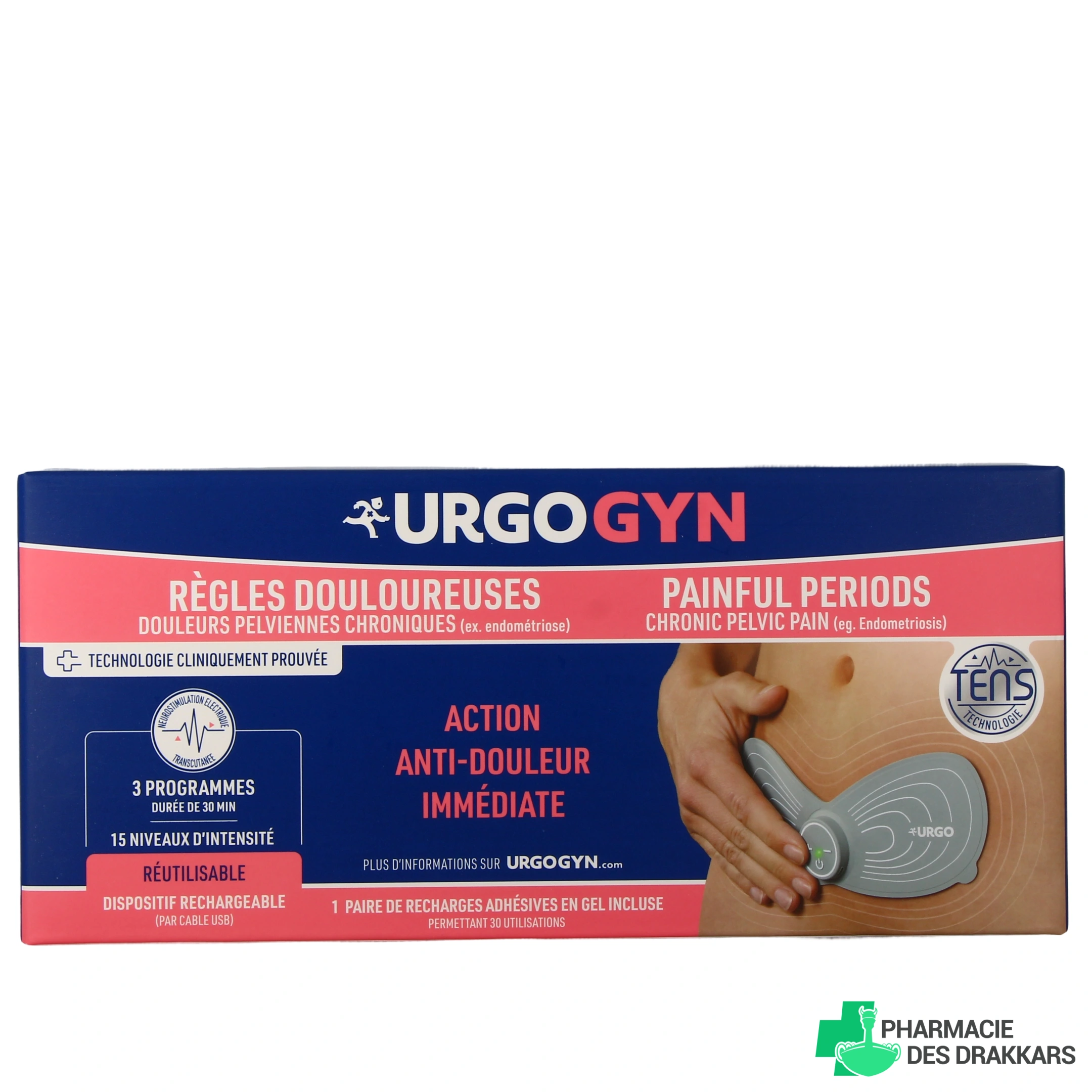 Le Patch d'électrothérapie UrgoGyn Règles Douloureuses d'Urgo a été développé pour soulager les dysménorrhées, les douleurs pelviennes que vous ressentez un peu avant (on parle alors de syndrome pré-menstruel) et pendant vos règles. Fini les spasmes et les crampes qui remontent jusqu'aux lombaires : place au bien-être tous les jours du mois !