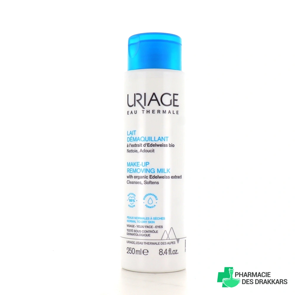 Ce fluide à sa texture onctueuse, le lait démaquillant Uriage va éliminer toutes traces de maquillage et les impuretés. Il peut être utilisé sur le visage et sur les yeux grâce à sa base nettoyante douce. Enrichi en Eau Thermale d'Uriage aux propriétés hydratantes et apaisantes, Ce lait démaquillant va permettre, en plus de la nettoyer, d'hydrater et d'adoucir la peau. De la glycérine entre également dans la formulation de ce soin démaquillant afin de protéger la peau et de limiter les éventuelles irritations ressenties par les peaux normales à sèches.