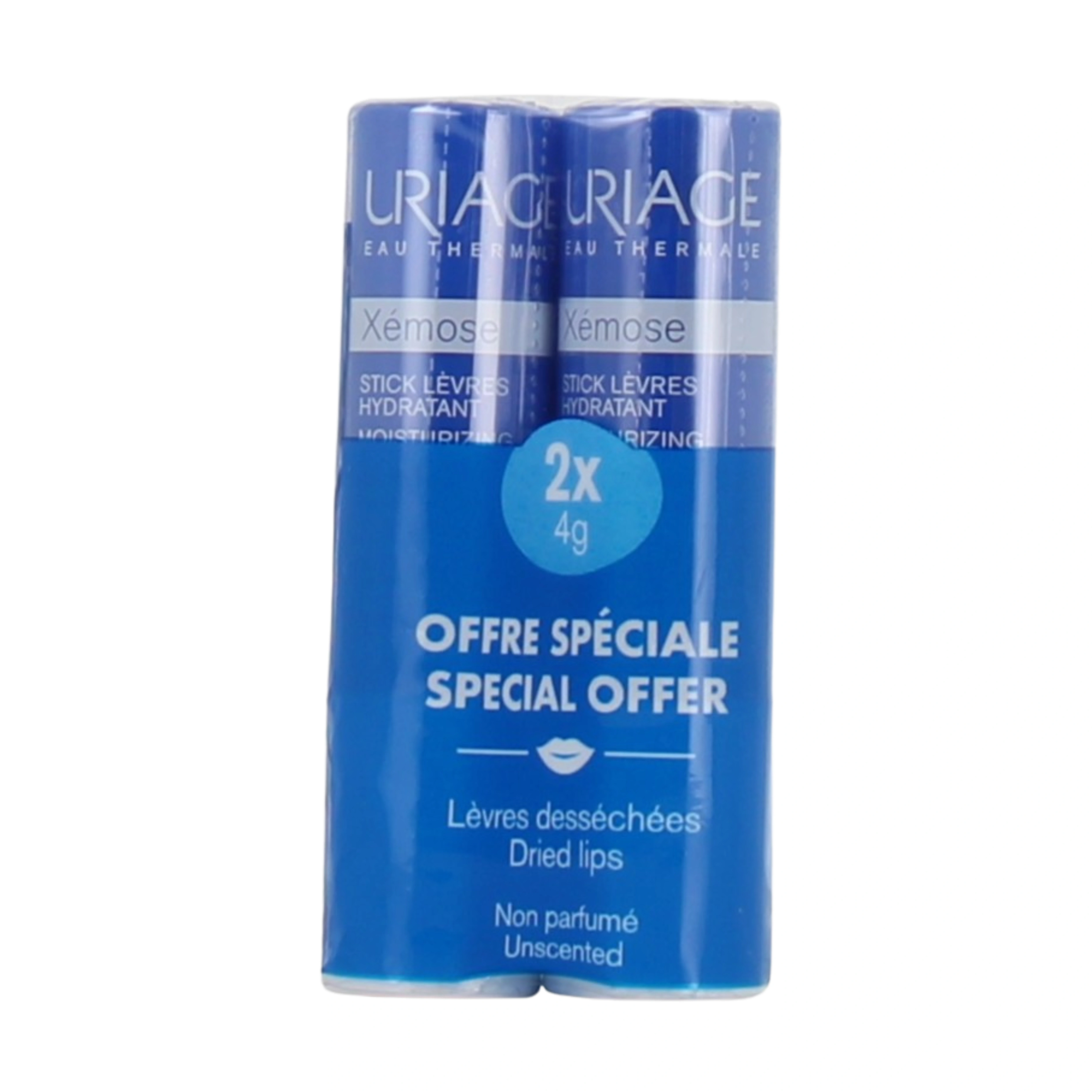 Présentation proposée par votre pharmacie en ligne pour le stick à lèvres hydratant Uriage Xémose : stick de 4 g à l'unité ou en lot de 2.