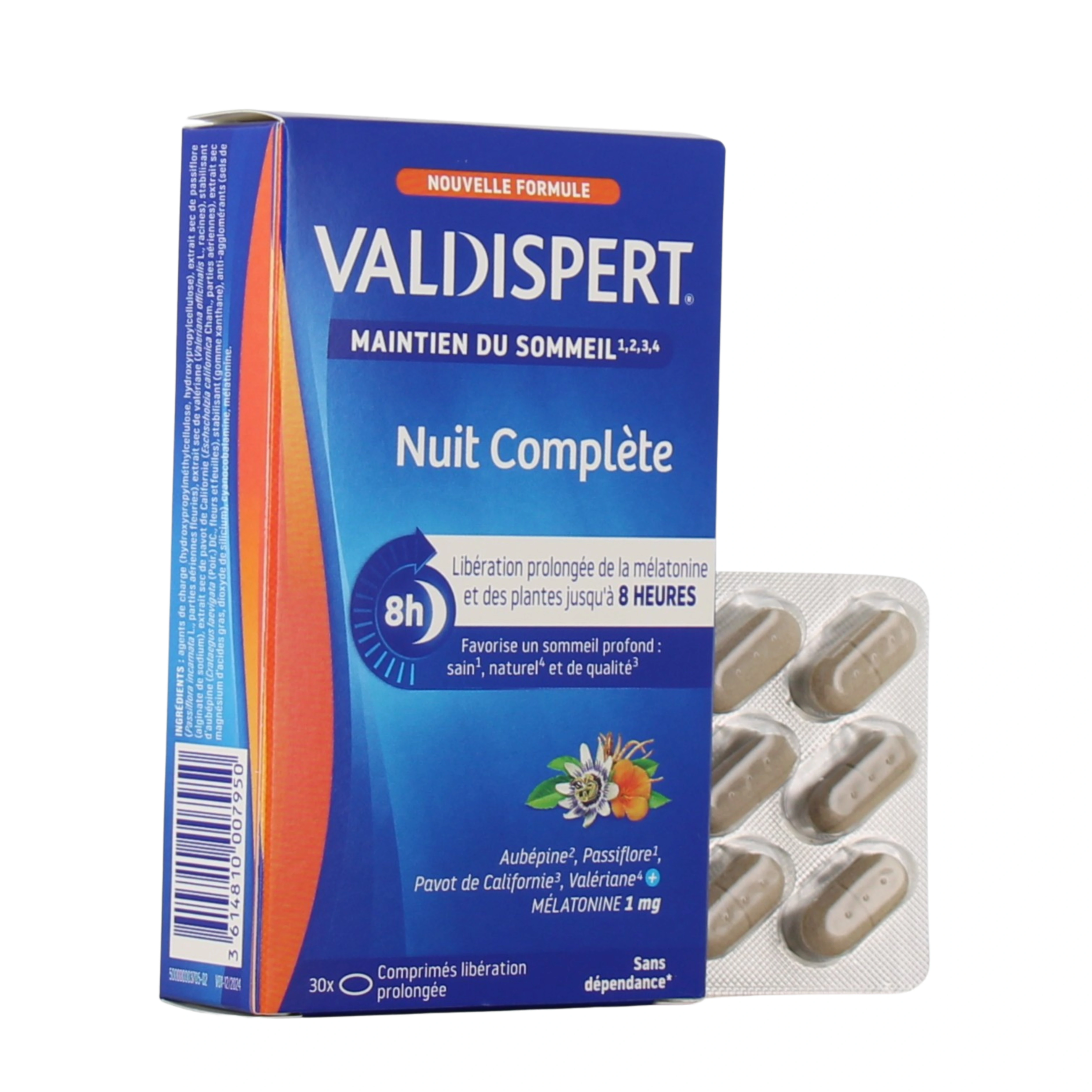 Présentation proposée pour Valdispert Nuit Complète sur notre pharmacie en ligne : Boîte de 30 comprimés