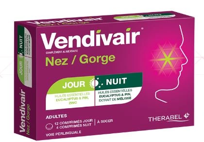 Le complément alimentaire Vendivair agit grâce aux huiles essentielles sur la gorge irritée et les voies respiratoires encombrées au service d'un mieux être de jour comme de nuit.