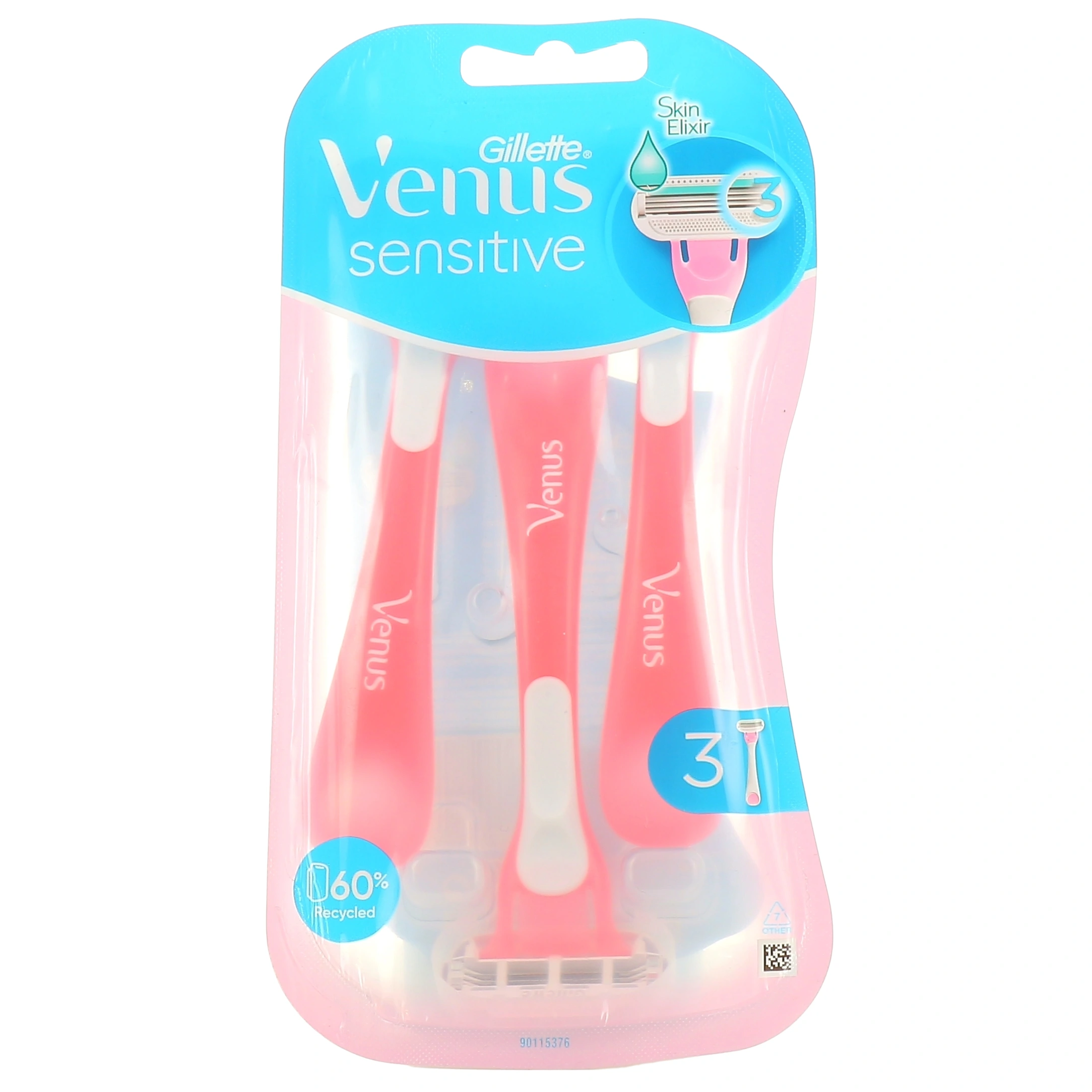Présentation disponible pour le rasoir jetable Venus Sensitive sur notre pharmacie en ligne : Pack de 3 rasoirs