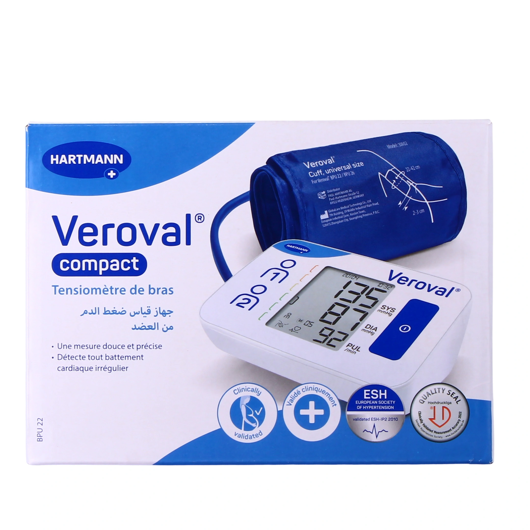 L'autotensiomètre Veroval des Laboratoires Hartmann est un tensiomètre qui s'utilise au bras et mesure la tension grâce à la méthode de mesure oscillométrique. Il permet de détecter et d'afficher les arythmies cardiaques.