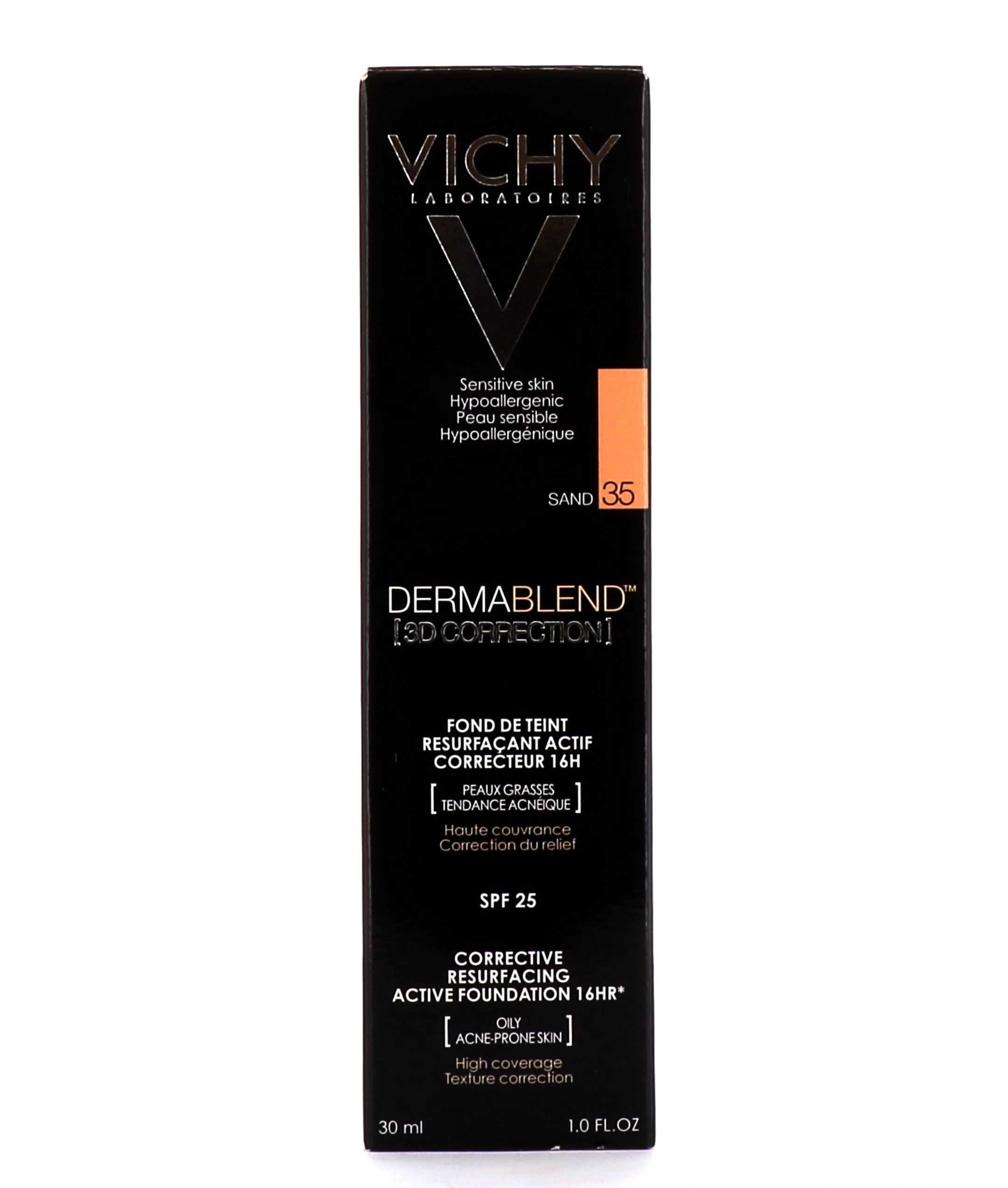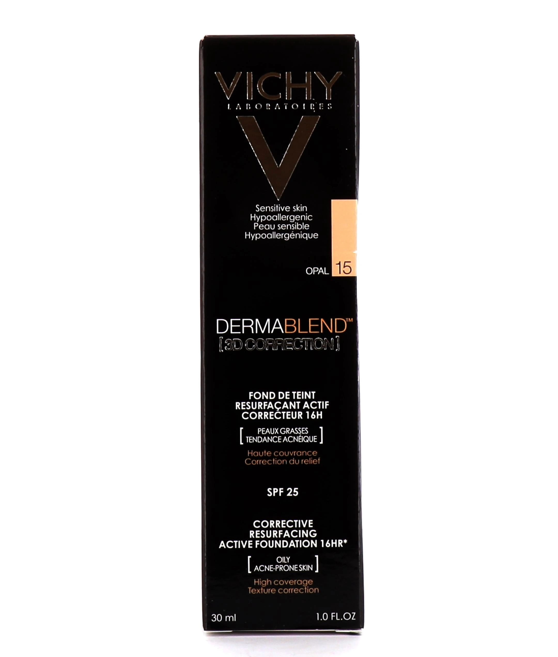 Le fond de teint correction 3D Vichy Dermablend est un fond de teint spécifique pour les peaux grasses qui présentent de l'acné. Il est disponible en 5 teintes pour s'adapter à toutes les carnations de peaux.
