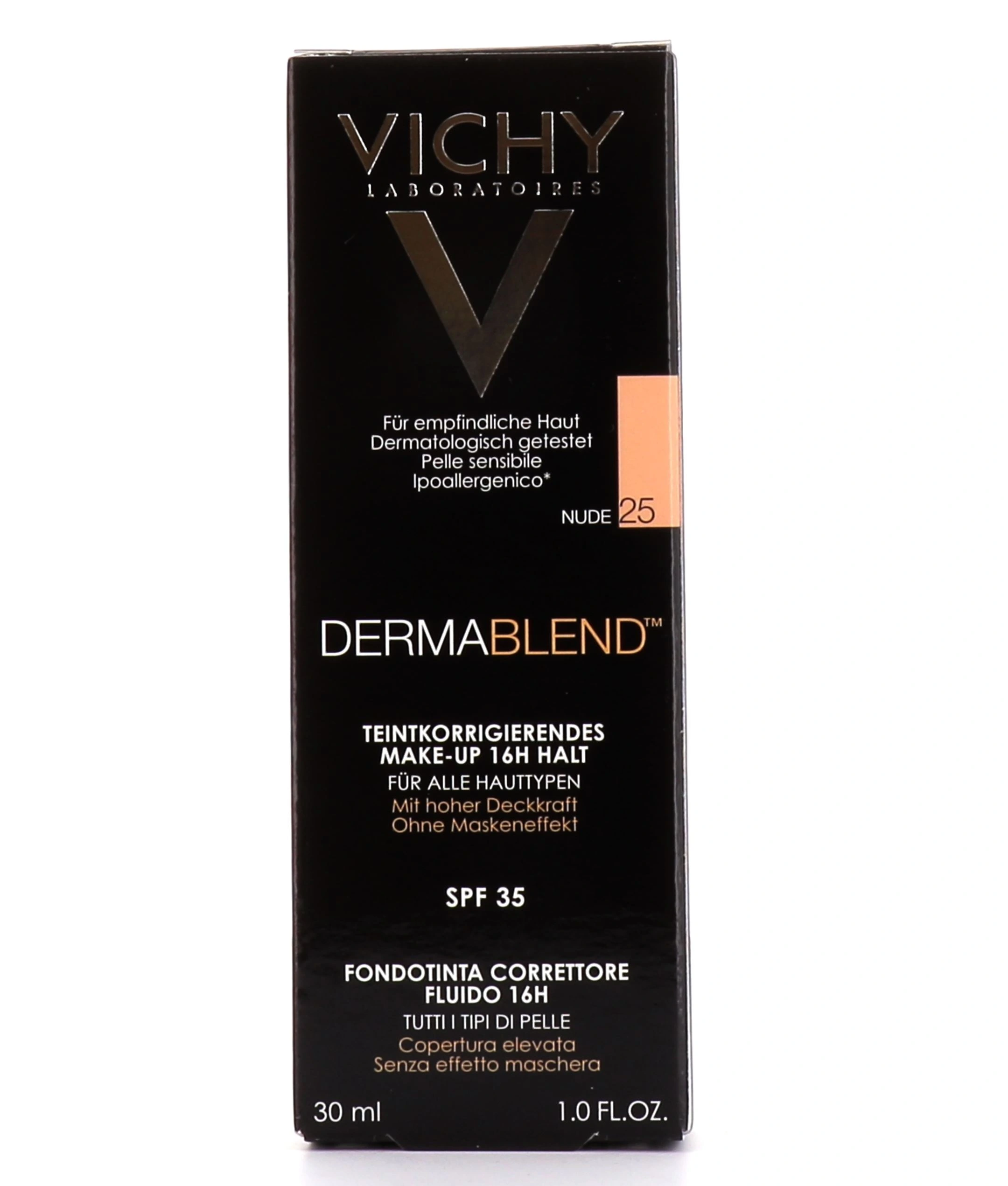 Conditionnement proposé par la Pharmacie des Drakkars pour le fond de teint fluide correcteur 16h Vichy Dermablend : Tube de 30ml.