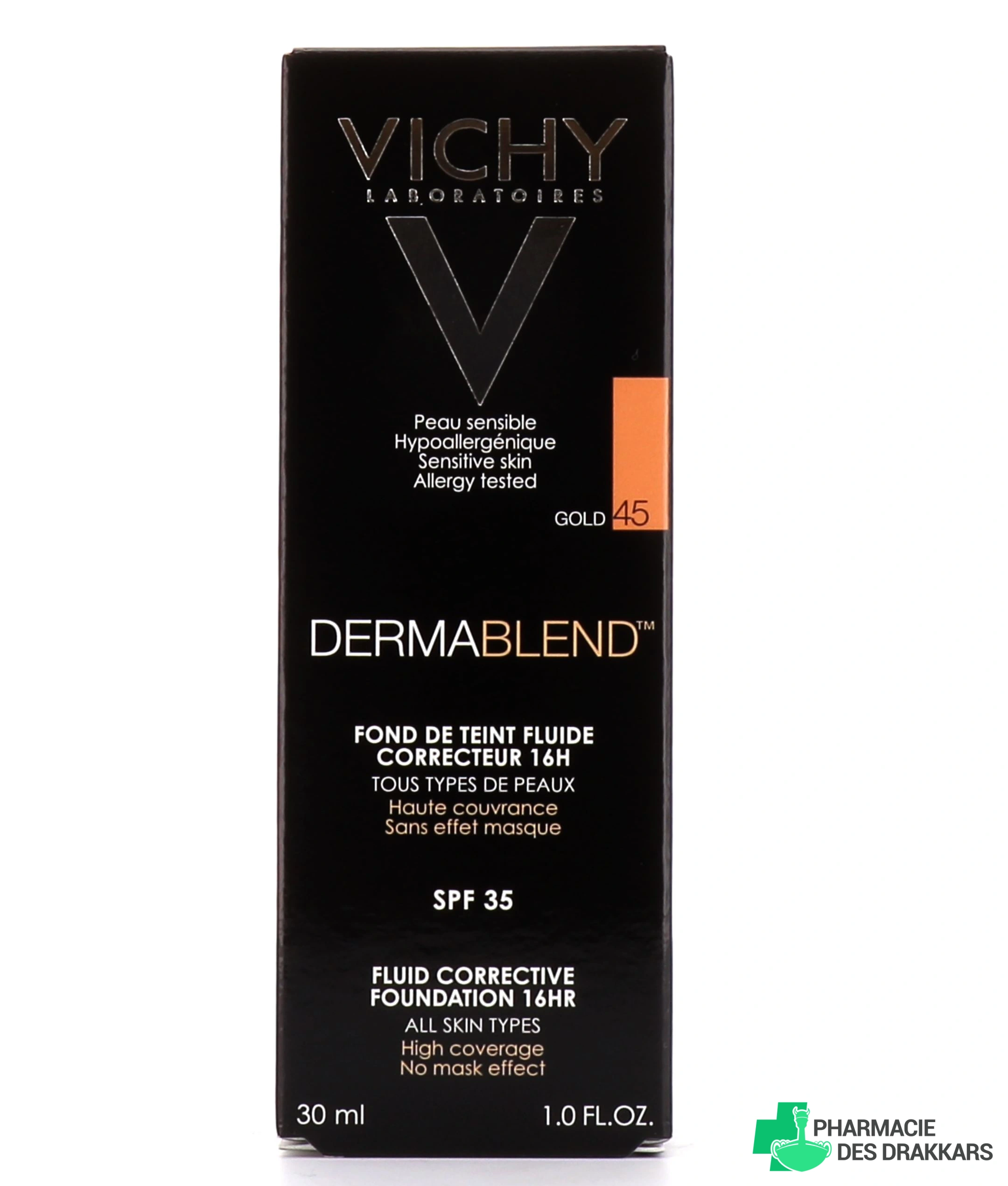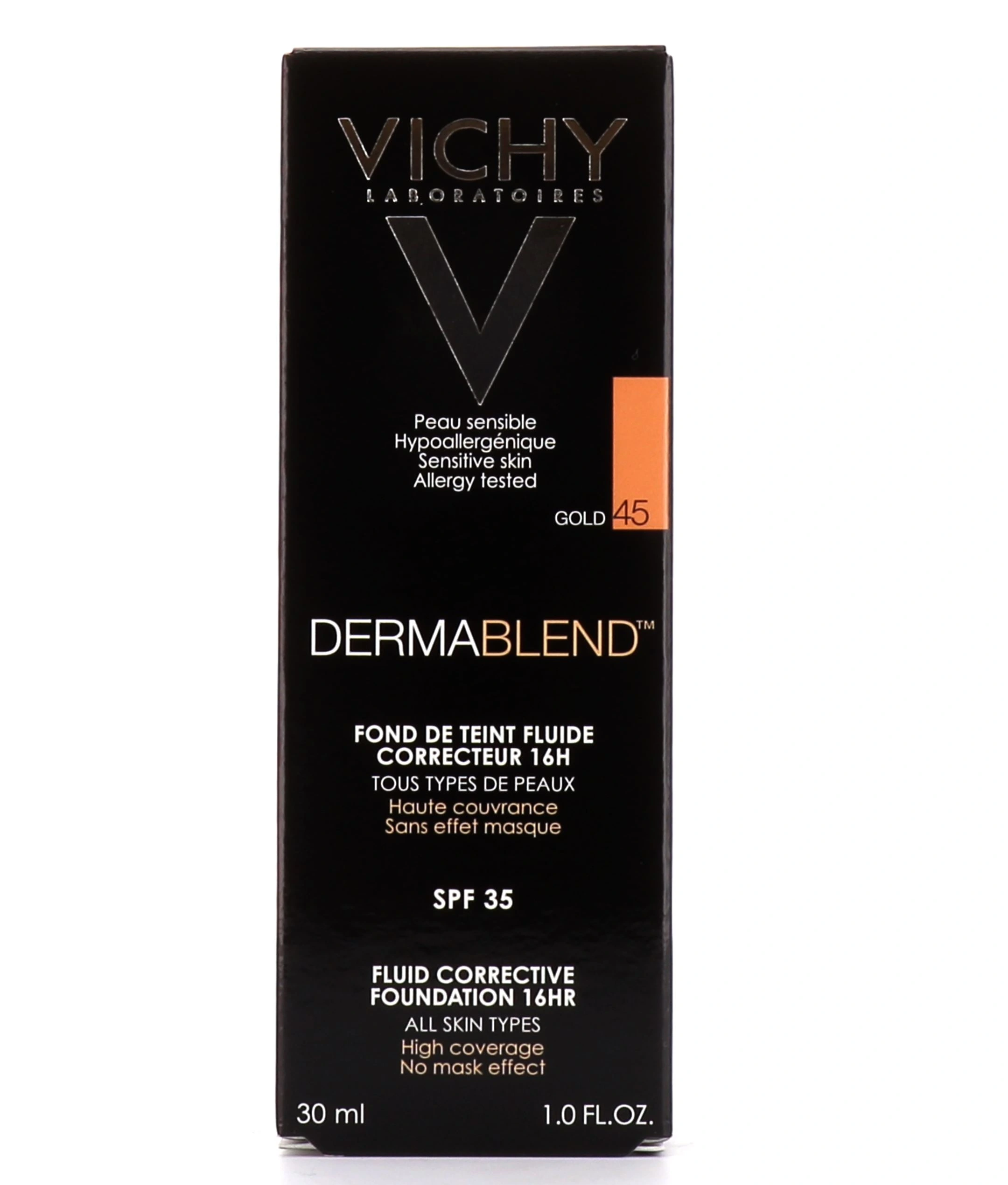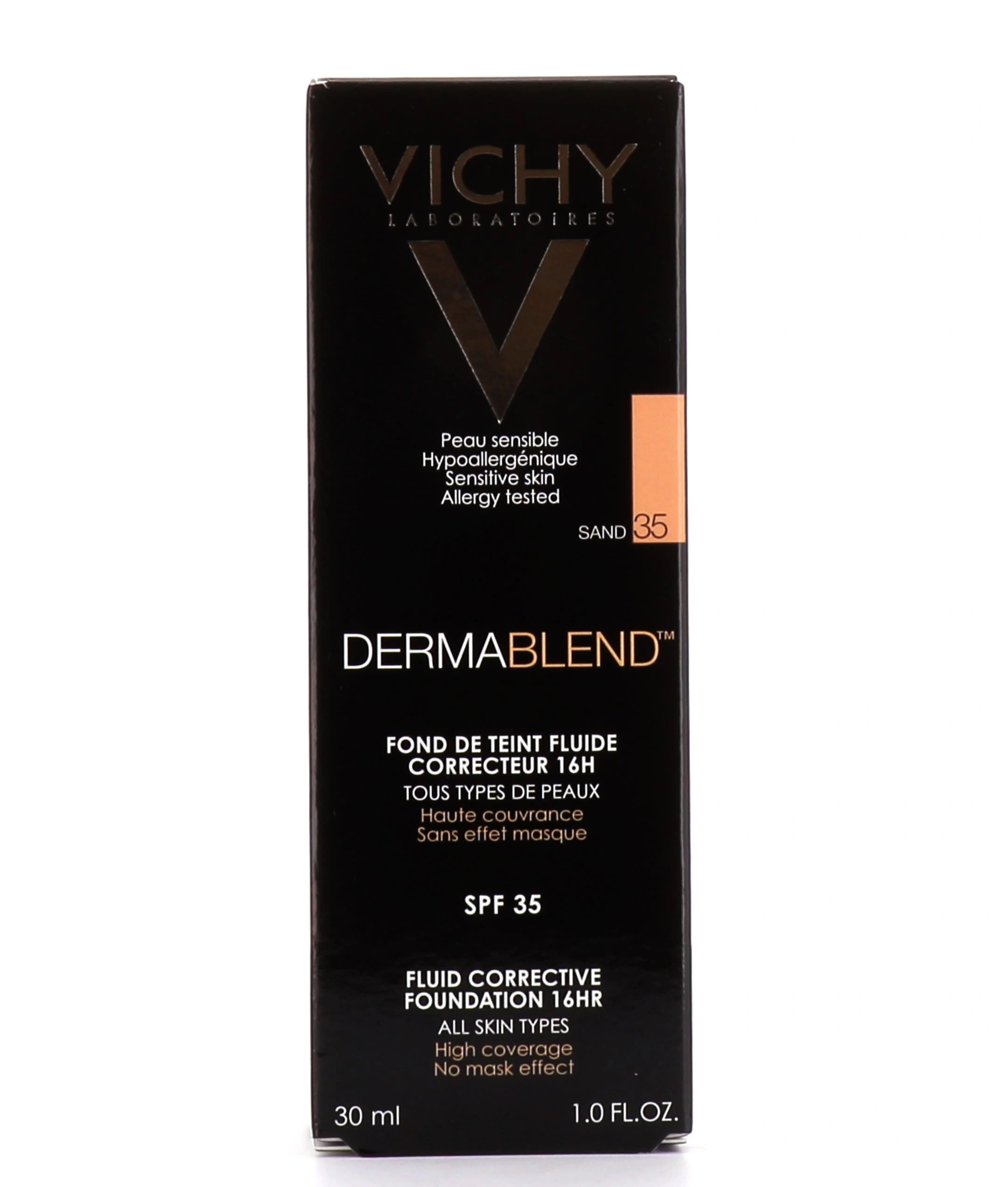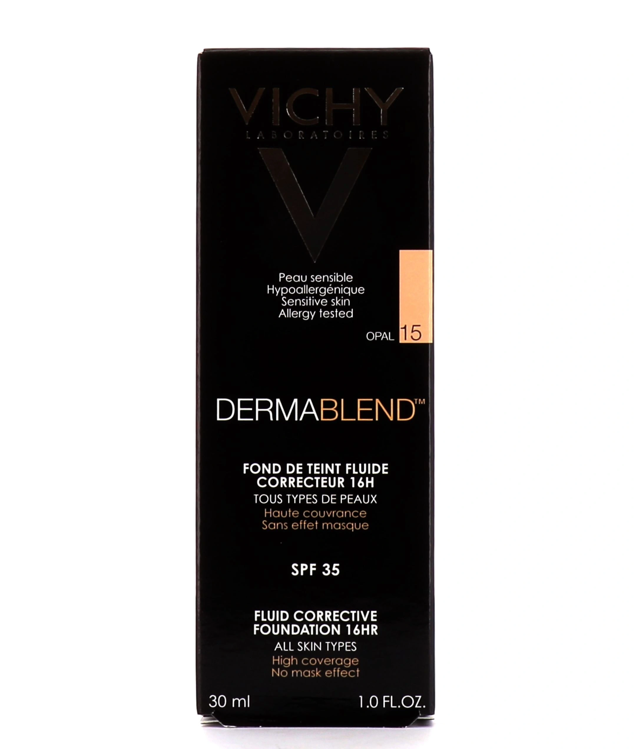 Le fond de teint fluide correcteur 16h Vichy Dermablend offre une correction parfaite des défauts cutanés légers à modérés et un fini mat. Ce fond de teint couvre efficacement les imperfections sans effet de masque. Treize teintes sont disponibles pour s'adapter à toutes les carnations de peaux.