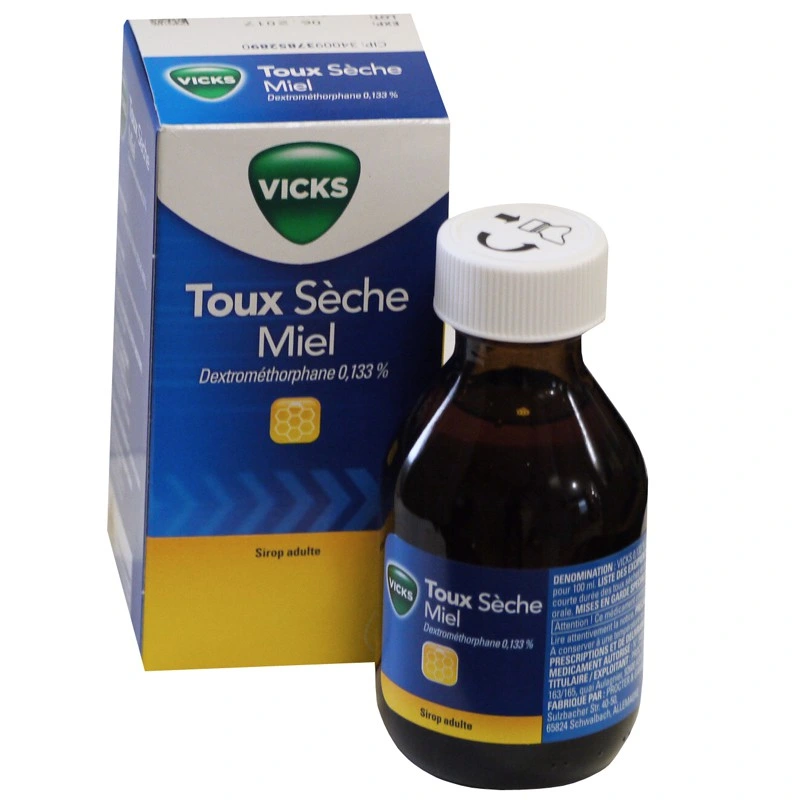 Description du médicament Vicks toux sèche miel 0.133% 120ml