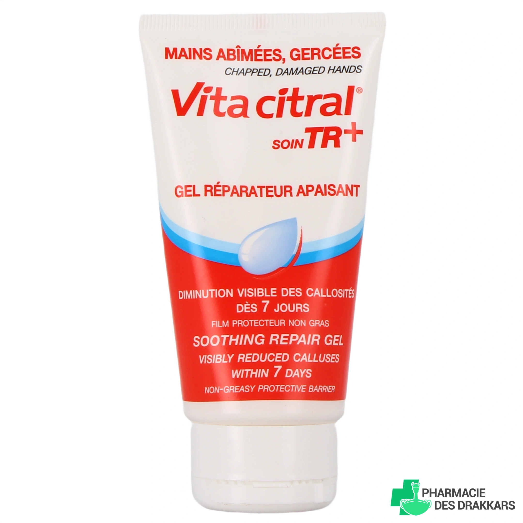 Le gel réparateur apaisant Vita Citral Soin TR+ est un soin pour les mains abîmées et gercées. Dès la première semaine d'application, les mains retrouvent douceur et souplesse.
