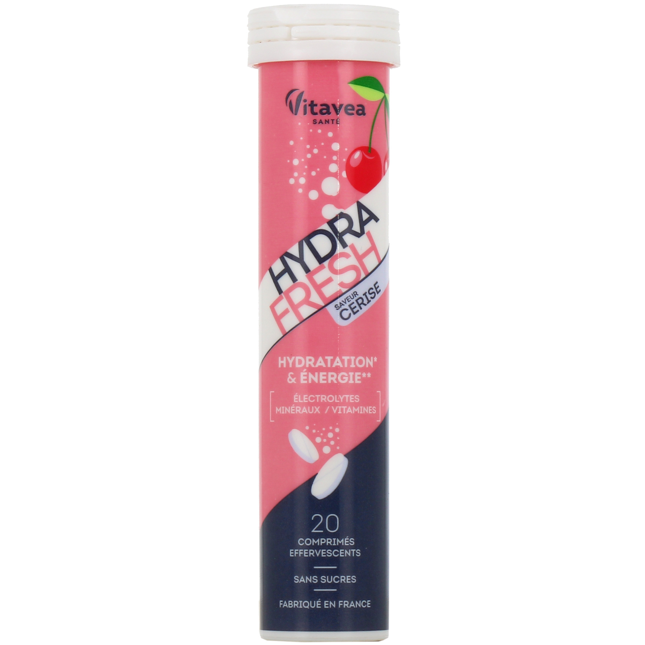 Présentation disponible sur notre pharmacie en ligne pour Hydrafresh Vitavea : tube de 20 comprimés effervescents, arôme au choix.