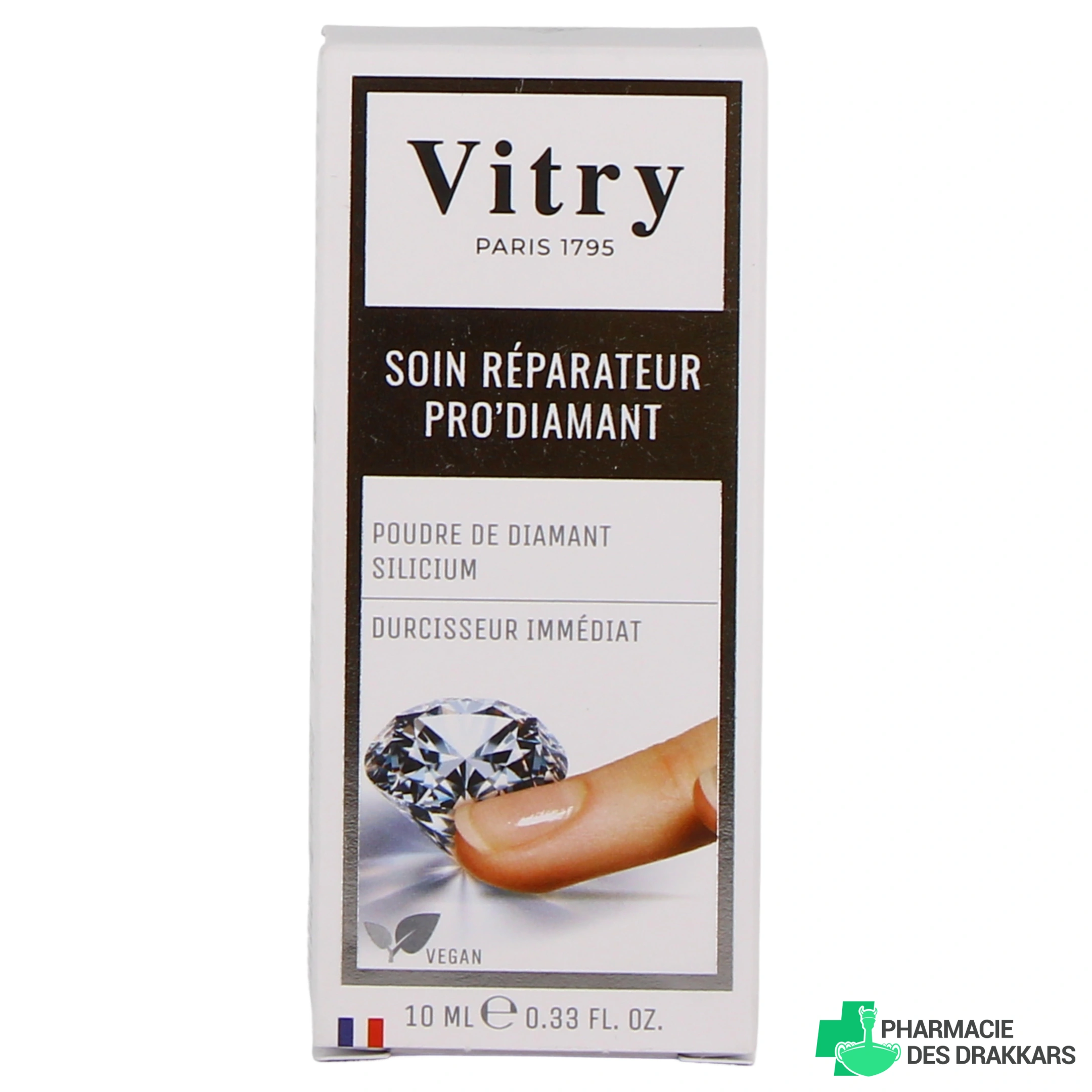 Le soin réparateur Pro Diamant conçu par la marque française Vitry est un soin pour les ongles destinés à les rendre plus forts, résistants, et pour leur redonner leur éclat naturel.