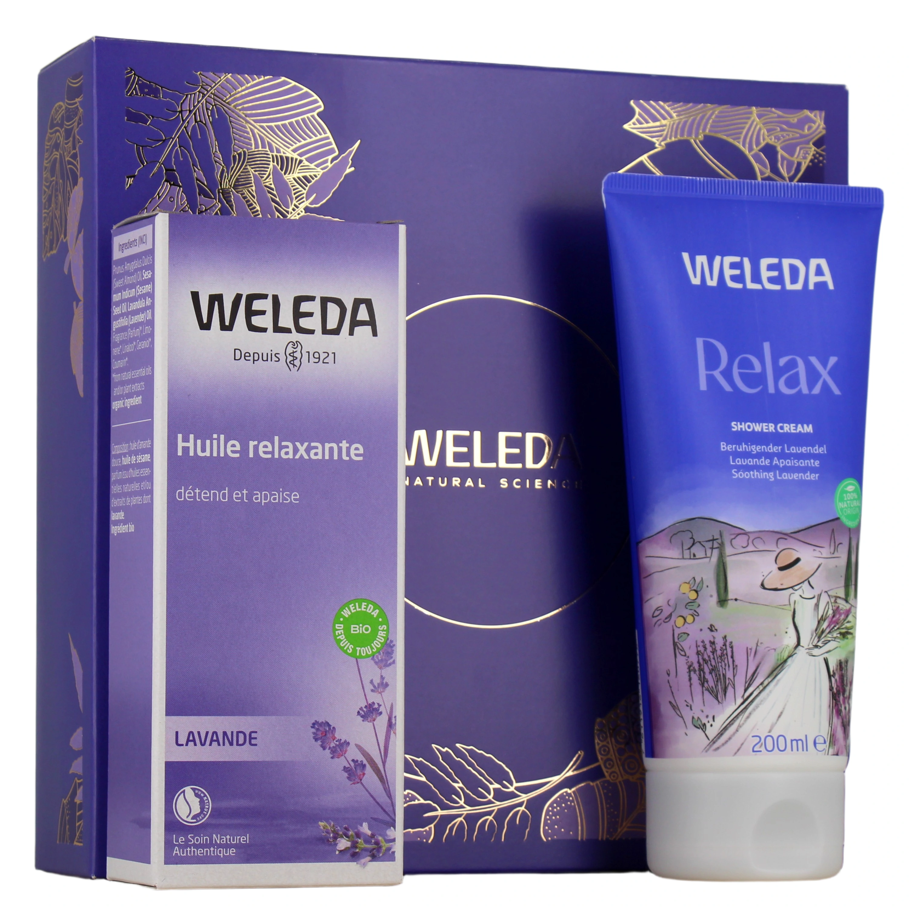 - Weleda Coffret Lavande : 1 huile relaxante 100 ml + 1 crème de douche relax 200 ml.