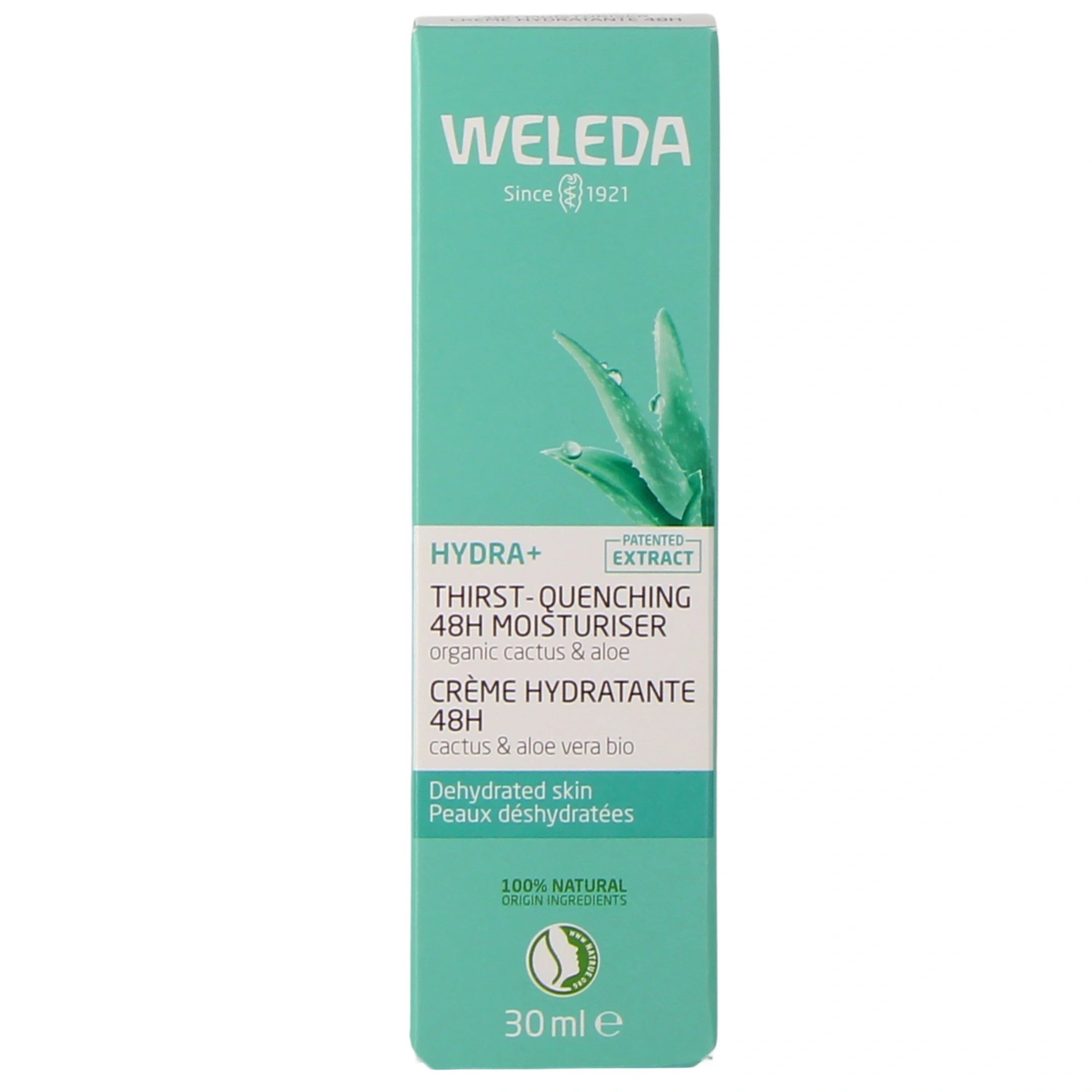La crème hydratante 48h au cactus et à l'aloe vera Weleda est un soin Bio qui booste l'hydratation des peaux déshydratées.