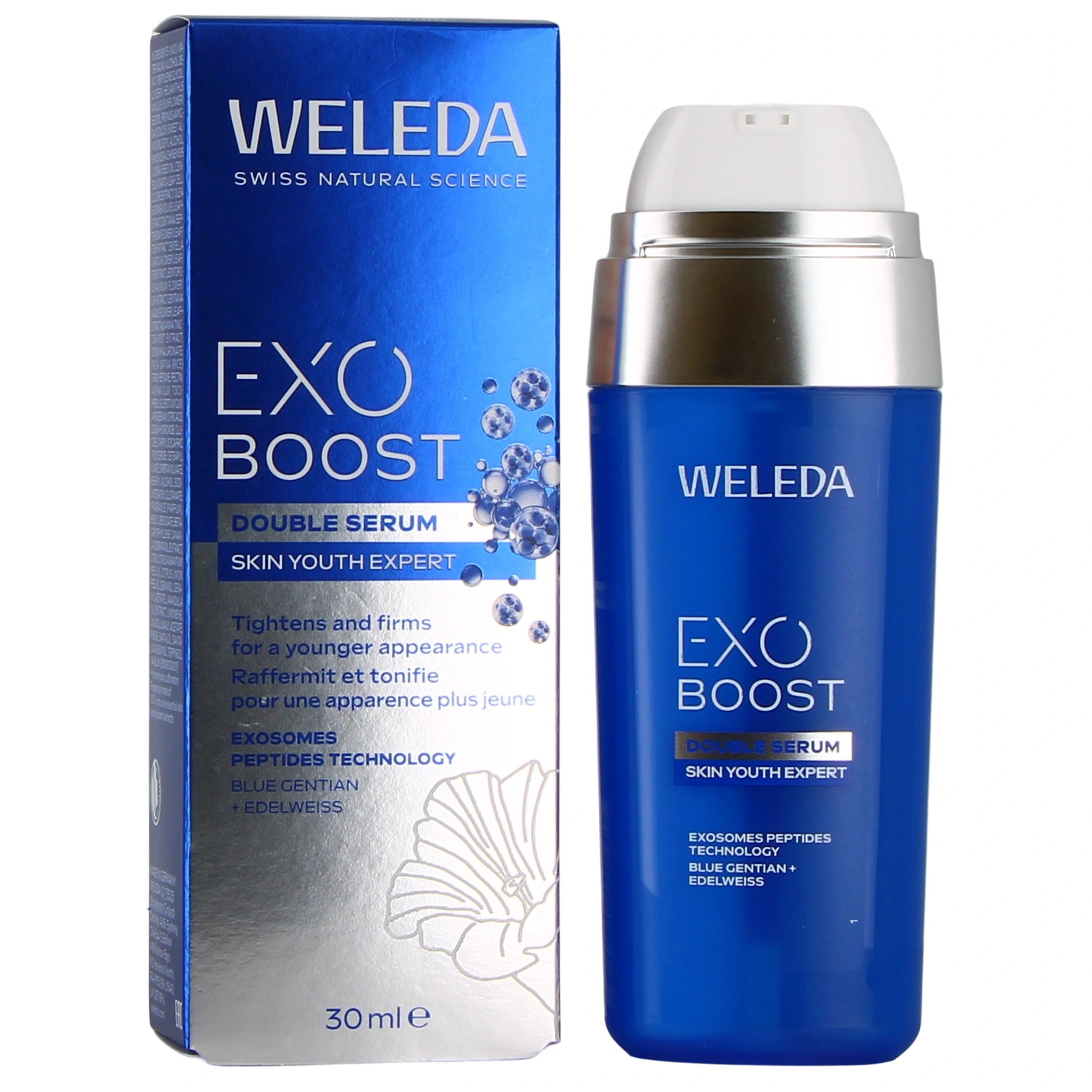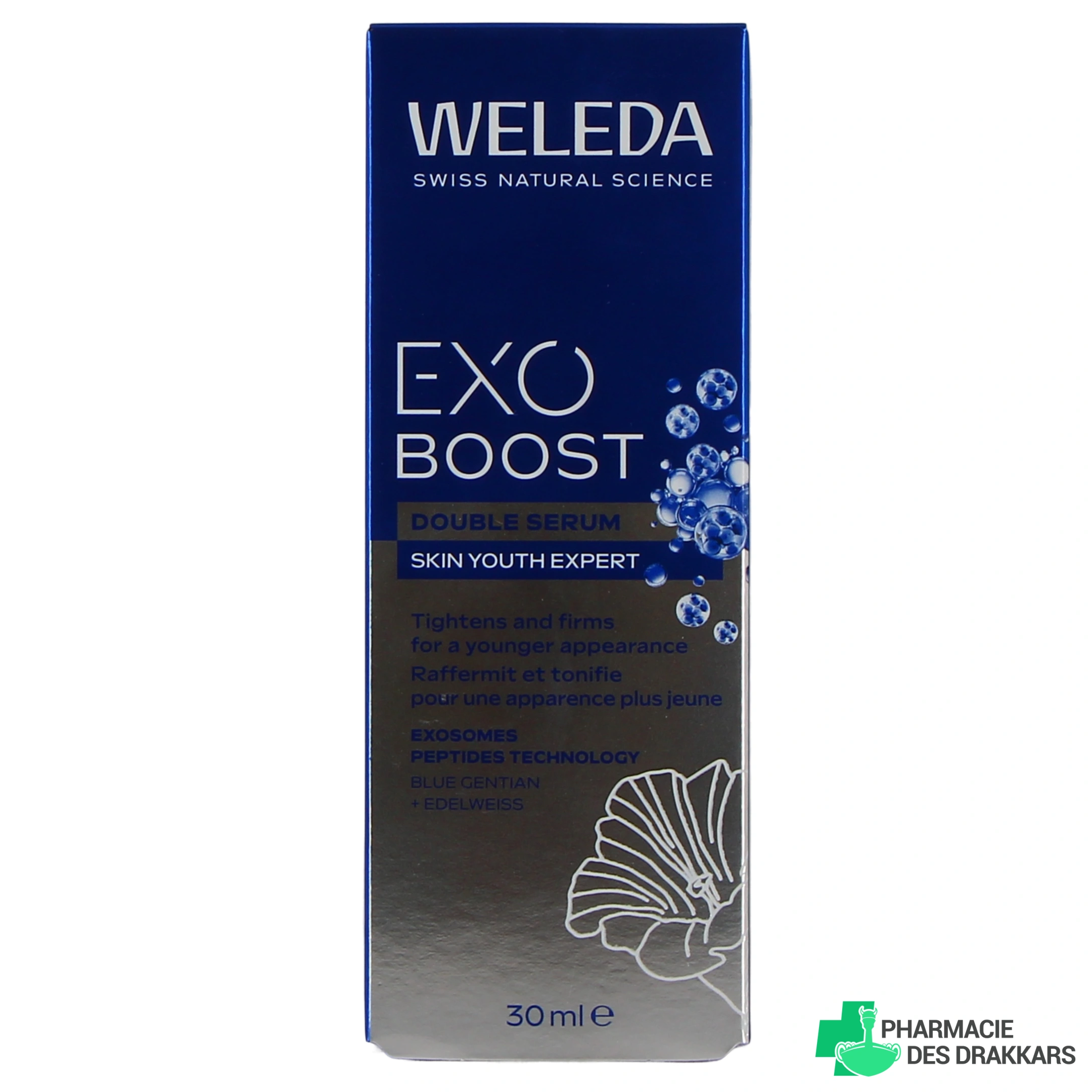 Le double serum Exo Boost Weleda est un soin anti-âge bi-phasé innovant conçu pour raffermir, tonifier et illuminer la peau. Grâce à l'association d'ingrédients naturels puissants et d'une technologie avancée, il agit efficacement sur les principaux signes du vieillissement cutané. Sa formule associe un complexe végétal booster de collagène et une technologie d'exosomes qui optimise la pénétration des actifs. Résultat : la peau paraît plus lisse, plus ferme et visiblement plus jeune jour après jour.