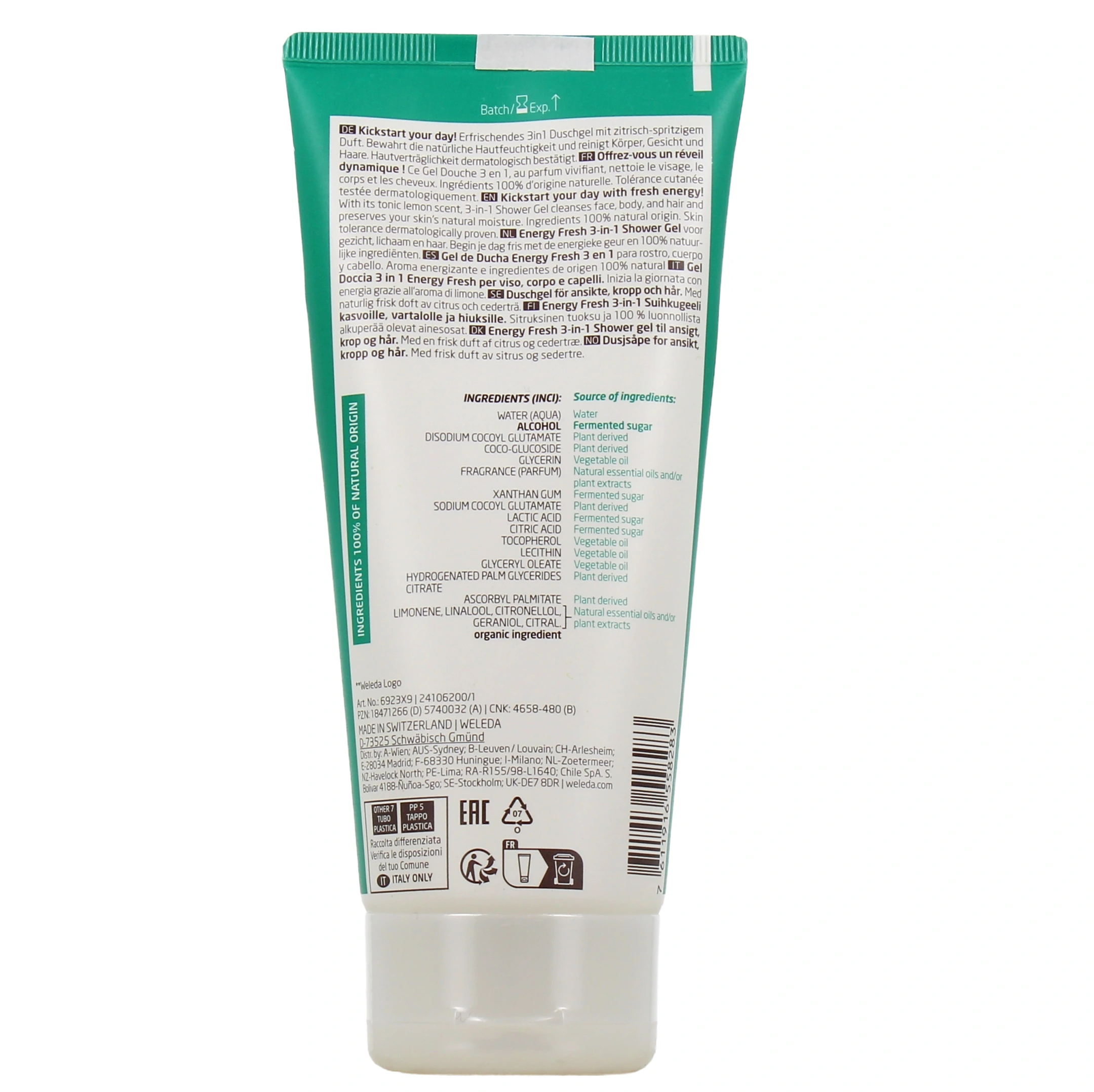 Vous pourrez retrouver le gel douche Homme Energy Fresh 3 en 1 de Weleda dans les présentations suivantes chez Pharmacie des Drakkars : Tube de 200 ml ou lot de 2 tubes de 200 ml de gel douche (Offre spéciale).
