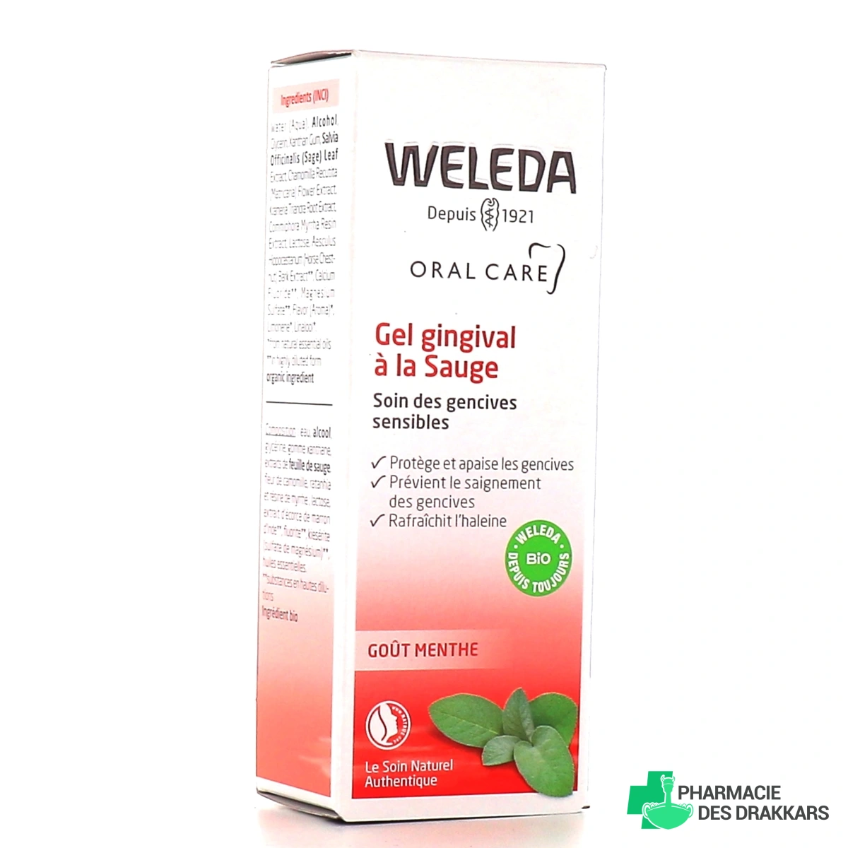 Le gel gingival Weleda est enrichi en extraits de plantes médicinales, comme l'extrait de feuille de sauge Bio ainsi que l'extrait de résine de myrrhe. Ce gel gingival a été formulé pour améliorer la résistance des tissus tout en limitant la sensibilité gingivale. L'extrait de feuille de sauge a été choisi pour ses vertus tonifiantes et stimulantes tandis que l'extrait de fleur de camomille a été sélectionné pour ses propriétés calmantes et apaisantes sur les gencives.
