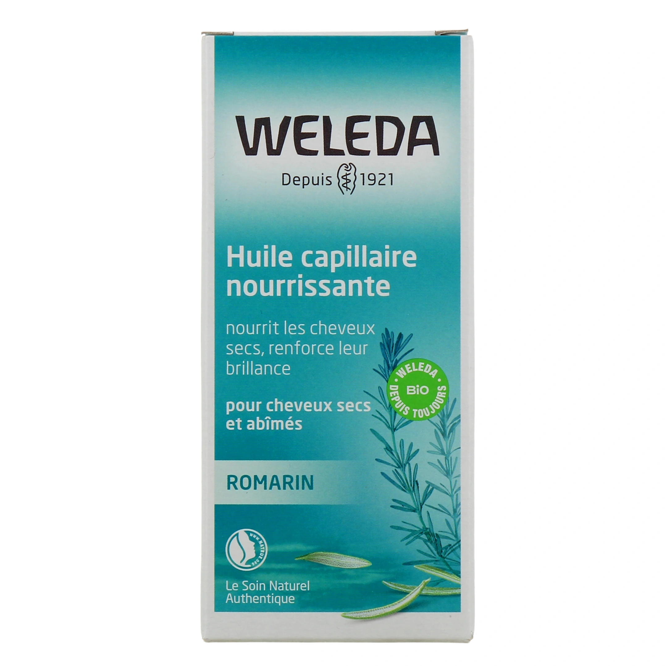 Formulées à l'aide d'extraits naturels de plantes (huile essentielle de romarin, extraits de fleur de trèfle rouge et de racine de bardane Bio), l'huile capillaire nourrissante Weleda va vous aider à nourrir vos cheveux trop secs ou abîmés, mais également à renforcer leur brillance. Elle contribuera aussi à rendre votre chevelure plus douce au fil des utilisations, et présente une très bonne tolérance cutanée (testée sous contrôle dermatologique).