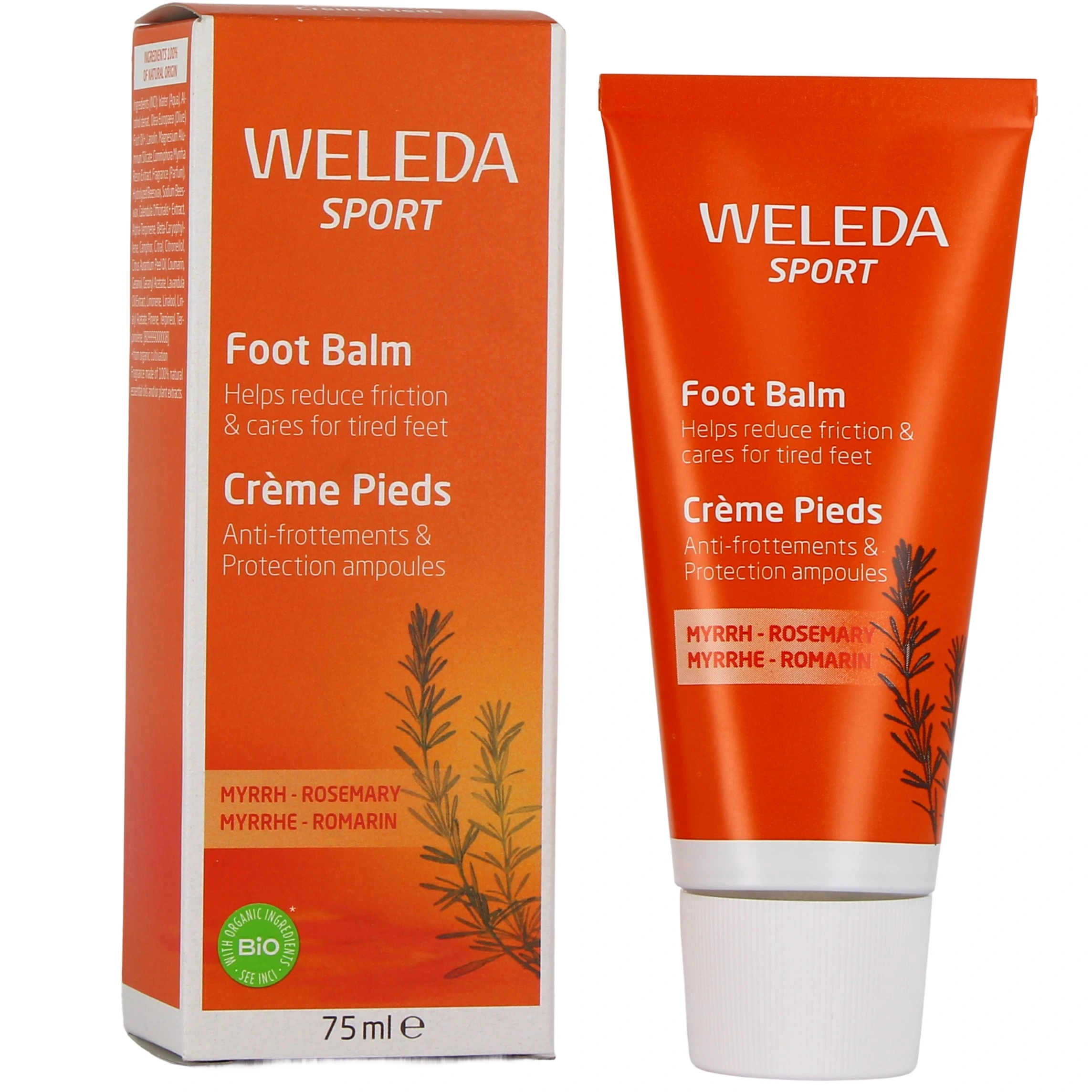 Entièrement constituée d'ingrédients 100% d'origine naturelle, la crème pieds de la gamme Weleda Sport convient aux pieds fatigués ou échauffés avant ou après une activité physique. En effet, elle aide à rafraîchir et à délasser les pieds, tout en limitant les sensations d'inconfort, l'excès de transpiration et en exerçant un effet antibactérien.
